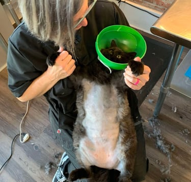 I will attempt to groom all cats, but may stop the groom if the cat becomes too stressed or it becomes dangerous to proceed. The client will only be charged for services completed. Thank you for understanding.